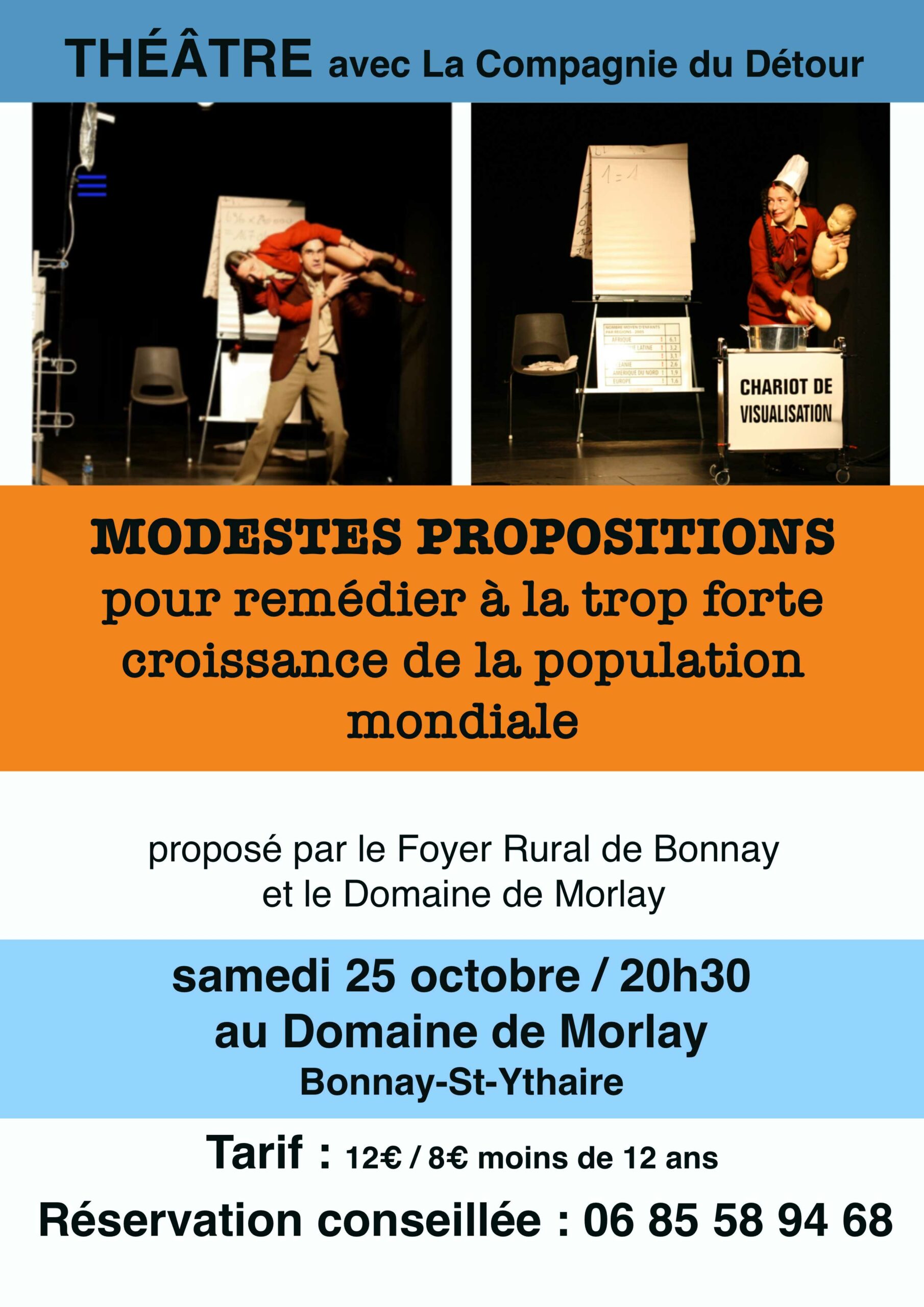 La Compagnie du Détour présentera son spectacle « Modestes propositions pour remédier à la trop forte croissance de la population mondiale », une création grinçante et pleine d’humour portée par le Chariot de visualisation n°1, où se mêlent réflexion, dérision et performance scénique.